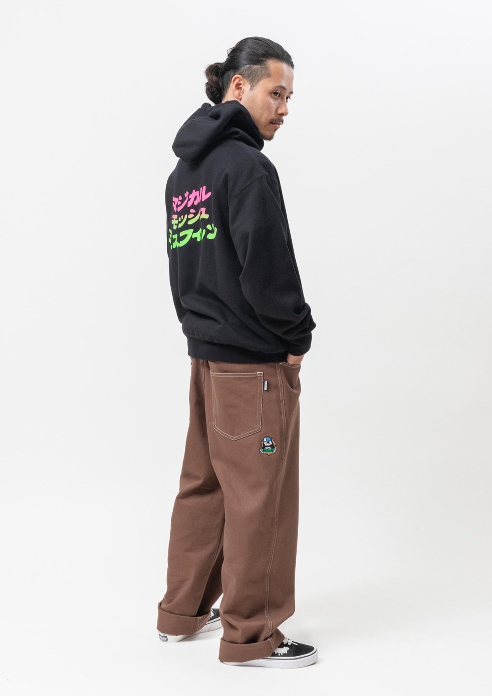 ゆったりとした太めシルエットで、